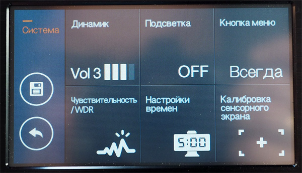 На мой взгляд, это лучшая система управления и работы с видеорегистратором из всего, что я видел. Тут, конечно, важнейшую роль играет большой сенсорный дисплей. Но и также с чисто программной точки зрения интерфейс, управление и настройки очень хорошо продуманы. Пользователю не нужно рыться в куче самых разнообразных настроек: тут все просто, понятно, настраивается очень быстро и работает весьма эффективно.