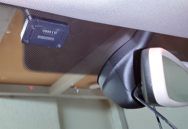 Монтируется он в любое удобное для водителя место. Единственное - надо учитывать, что снимается видеорегистратор вверх, так что до верха ветрового стекла нужно оставить немного пространства.