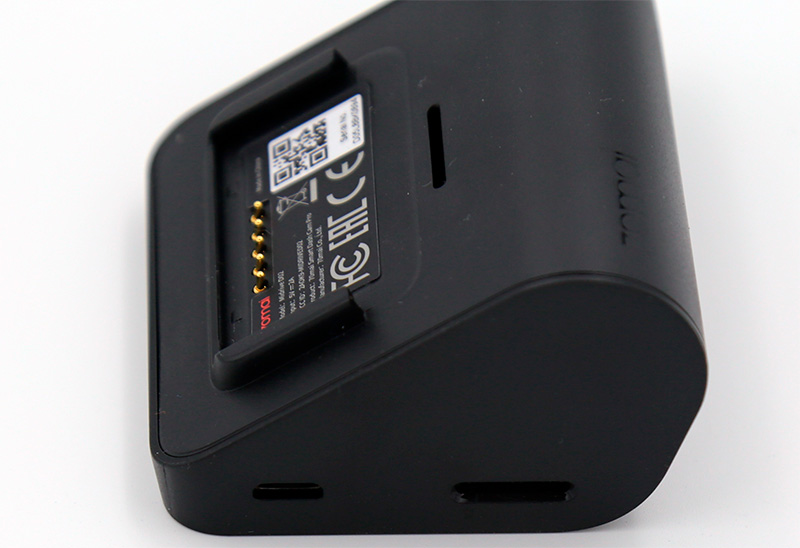 На левом торце - слот для карты памяти и порт microUSB. И на этом снимке видно, каким образом видеорегистратор садится на держатель. Чтобы видеорегистратор снять, его нужно потянуть строго вверх (это нужно учитывать при выборе места для держателя). Контактная группа на посадочном месте видеорегистратора нужна только для подключения GPS.