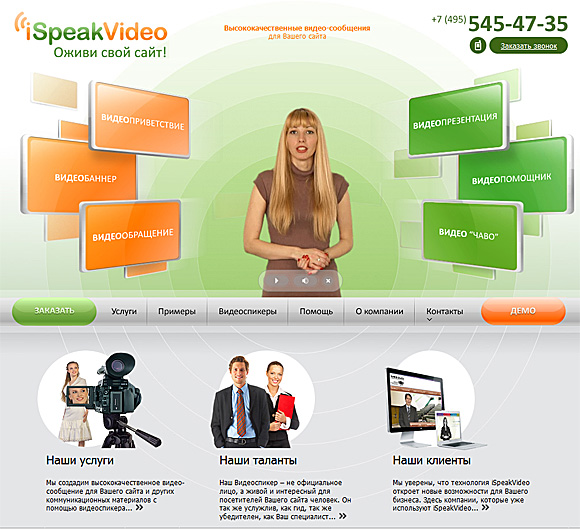 Поэтому данная технология работает следующим образом. Вы можете самостоятельно приехать к ним в студию, там вас запишут (вот как меня), затем обработают и выдадут код, который вы ставите на сайт, где должно появиться ваше (или чье-либо еще) обращение. Не хотите выступать сами - не проблема: напишите текст, выберите видеоспикера (мужчины, женщины, дети, мультперсонажи), и он (она, оно) запишет ваш текст. Лично я не стал доверять свое видеообращение спикерам, однако не все комфортно себя чувствуют перед камерой, так что это исключительно дело вкуса.
