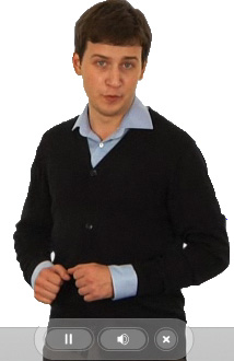 При воспроизведении под фигурой видеоспикера появляются пиктограммы управления плеером - стоп-пауза, включить-выключить звук, закрыть плеер.