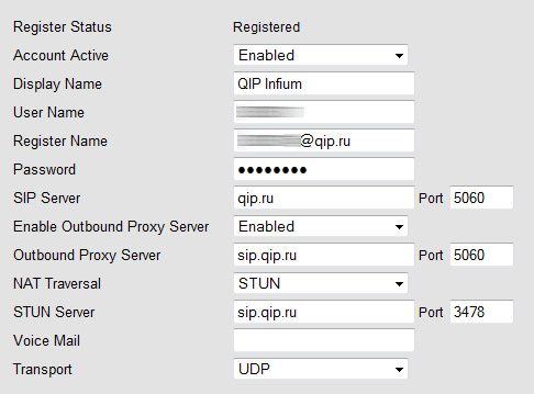 Вот настройки для трех различных популярных видов подключений: QIP, Sipnet.ru и "Мультифон" от "Мегафона".