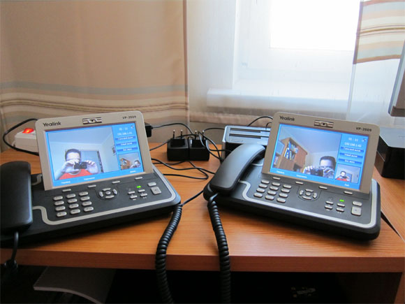 В первую очередь эти видеозвонки можно совершать на такие же аппараты: то есть если у вас дома или в офисе есть несколько подобных устройств, то с них друг на друга можно совершать видеозвонки, причем в данном случае неважно, с какого аккаунта на какой вы звоните (лишь бы это были звонки внутри одной сети IP-телефонии или из одной в другую, в которой поддерживается соответствующее гейтование): если звонок с одного телефона приходит на другой, то при этом будет поддерживаться видеозвонок.