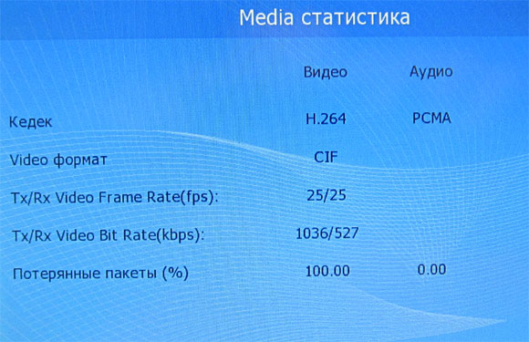 Также доступна статистика разговора по использованию видео и аудио.