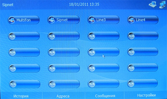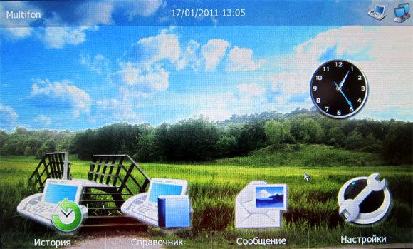 Главная особенность телефона - это, конечно, семидюймовый цветной сенсорный экран. Именно он должен добавлять телефону различные новые свойства. Впрочем, посмотрим, как это будет выглядеть.