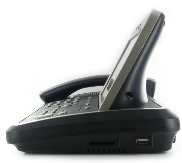 Чего тут, на первый взгляд, нет? Отсутствует адаптер Wi-Fi, что неприятно при домашнем применении - телефон туда-сюда не потаскаешь. Но он вообще-то предназначен для офиса, а там Wi-Fi не особенно нужен: все равно аппарат будет стоять на столе, а проводная связь для видеозвонков - намного надежнее, чем беспроводная.