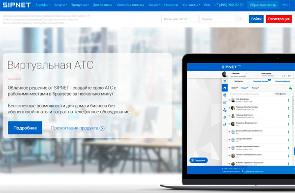 В 2017 году свою виртуальную АТС представила компания SIPNET - это первая в России сеть IP-телефонии. Сама облачная АТС от SIPNET - бесплатная, а для корпоративных применений выбирается какой-то тариф с абонентской платой, куда входит определенный пакет звонков на стационарные и мобильные номера.
