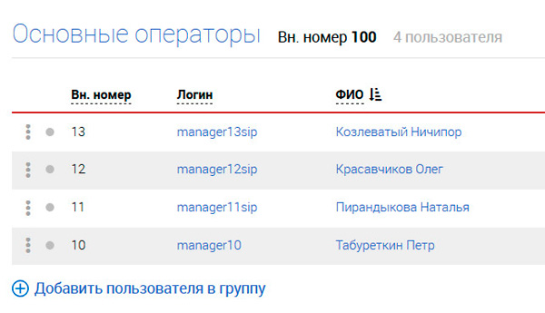 Раздел "Группы". Давайте создадим группу основных операторов и включим туда определенных пользователей.