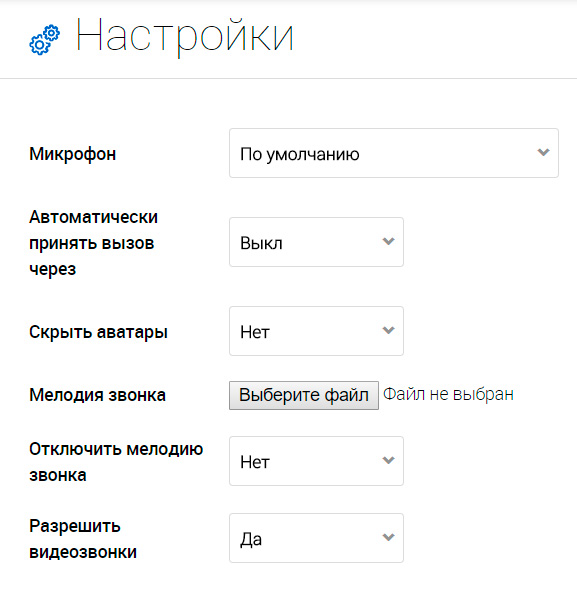 Раздел "Настройки" - основные настройки виртуальной АТС.
