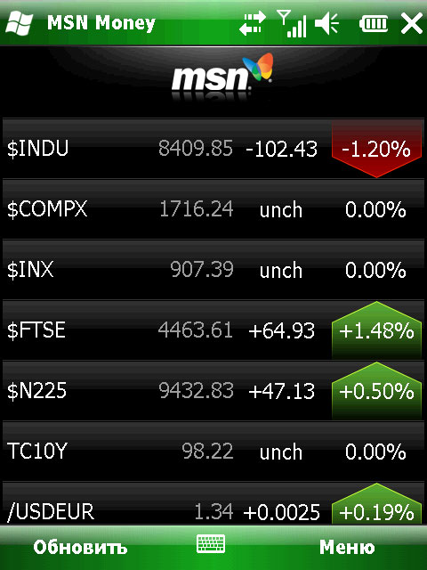 Добавился MSN Money. Как ни странно, работает (уж лучше бы работала погода). Только нам это как-то без надобности.