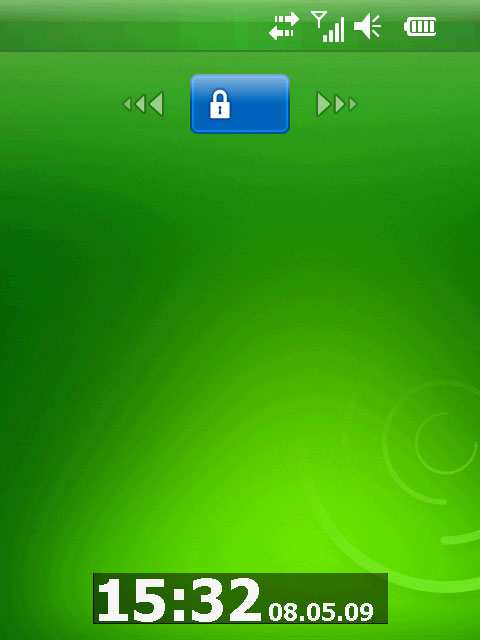 Гениально, да? Только она не разблокируется никакими путями. Я уж давил и на кнопку, и на стрелочки, и на экран - без толку. Хорошо еще, что у меня iPhone, и я вдруг понял, что разработчик этого безобразия также купил себе iPhone. Потому что, как и в iPhone, они сделали разблокировку сдвигом кнопки. Только в iPhone кнопка сдвигается вправо (что очень хорошо видно и понятно), а в новой Windows Mobile ее нужно сдвигать влево или вправо, что ни черта не понятно, потому что в интерфейсе этой операционки не было вообще как класса сдвига кнопок.