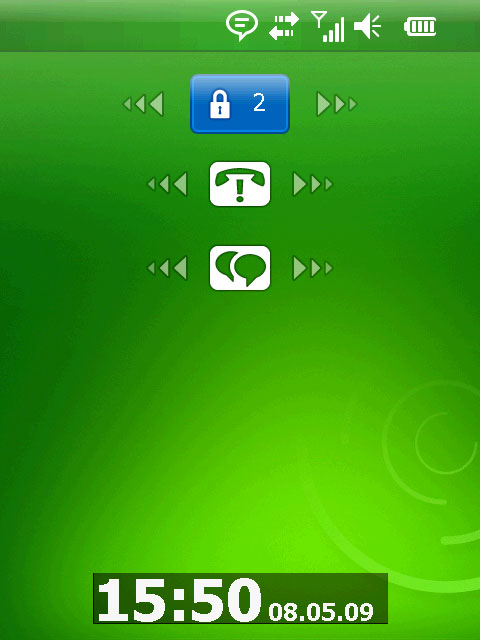 При этом если сдвинуть кнопку телефона или SMS - соответственно, попадаешь в звонки или SMS. Удобно. Хотя в SPB Software до этого додумались минимум года три-четыре назад.