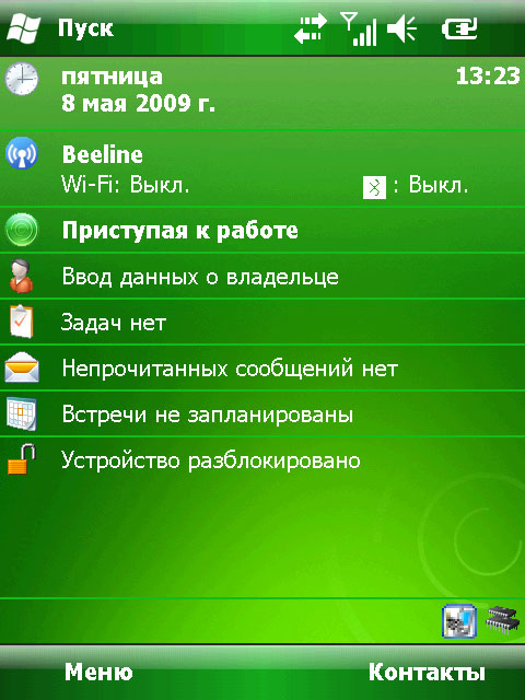 Старая беда Windows Mobile - десктоп. Эта убогая поделка как тянется с Windows CE 3.0 Pocket PC Edition, так практически никаким изменениям не подвергается. Разве что новые ссылки там появляются вроде "блокировки" или "приступая к работе", да и только-то.