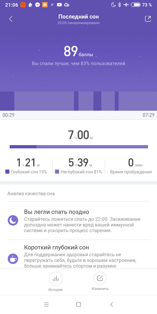 Главный вопрос, который меня интересовал, - это сколько браслет будет работать от одного заряда, потому что тут все-таки цветной дисплей. Надо сказать, что заявленные производителем 12 дней подтвердились. Примерно столько браслет и жил. На 8-й день утром у него было 32% заряда.