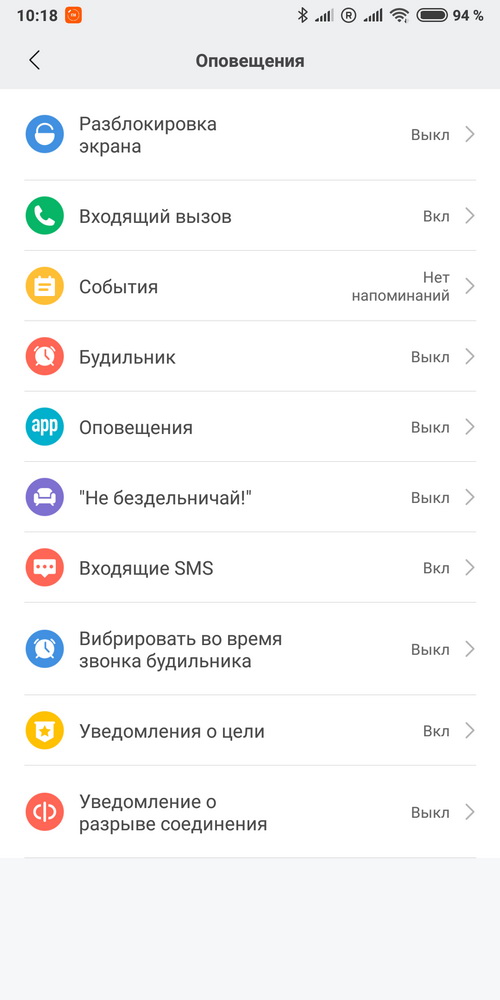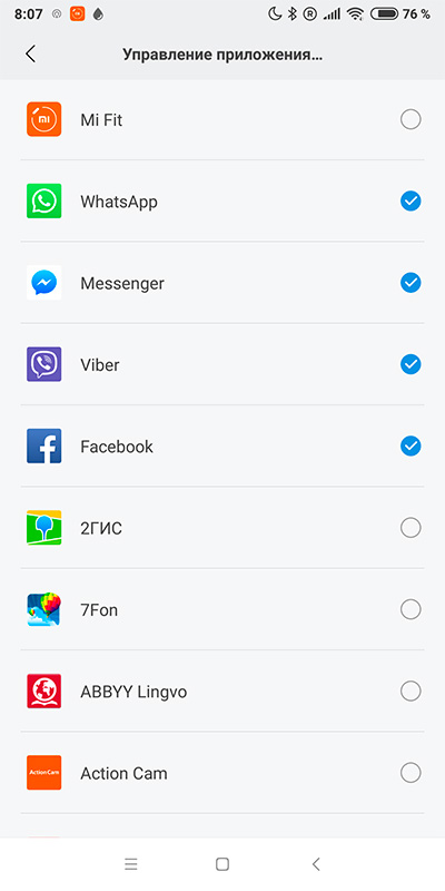 Браслет также можно настроить на показ push-уведомлений от любых выбранных вами приложений.