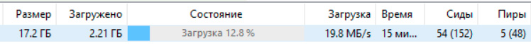 Сначала в торренте запустил качаться большой файл. Первоначальная скорость была 19-22 мегабайта в секунду - максимальная для моего интернет-канала.