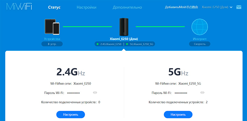 Прежде чем мы начнем измерять скорости роутера, давайте посмотрим, какие возможности его администрирования нам предоставляет программа Mi Wi-Fi (ну и, соответственно, админка роутера через браузер).