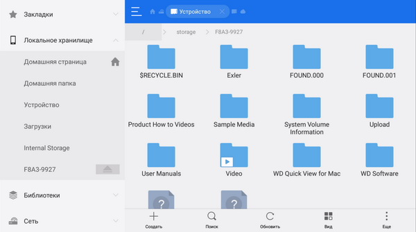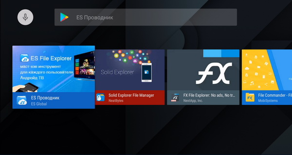 Я под Android обычно использую ES File Explorer - его и установил. Кстати, для поиска приложений очень удобно использовать голосовой поиск: микрофон встроен в пульт приставки.