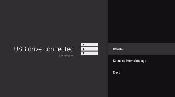 Подключил через USB-порт внешний накопитель с медиафайлами. Устройство его увидело.