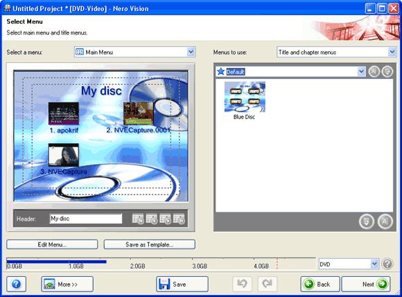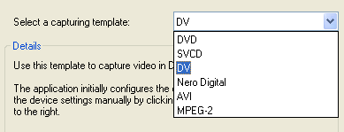 В Nero Express целый ряд различных форматов заложены в специальных темплетах, которые можно выбирать в соответствующем выпадающем меню: