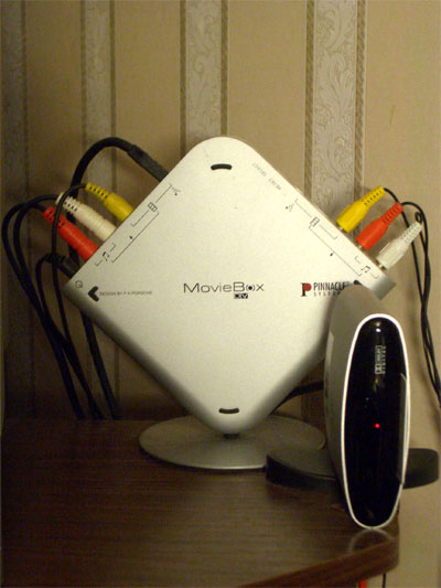 Но наиболее предпочтительный вариант - внешнее устройство видеозахвата, которое подает видеопоток на компьютер через порт FireWire или USB 2.0. Я для решения данной задачи использую Pinnacle Studio MovieBox. Это устройство достаточно дорогое, но вам совершенно необязательно приобретать именно его: существует масса более дешевых аналогов, которые выпускают самые разнообразные фирмы - AVerMedia, D-Link, Teac, ATI и так далее. Продукты Pinnacle среди этих устройств считаются одними из лучших, но они и наиболее дорогие. Pinnacle MovieBox, кстати, уже не выпускается, его заменило аналогичное устройство Pinnacle Studio Plus.