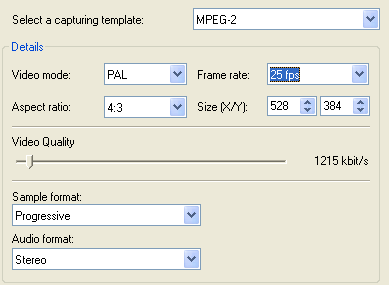 Так какой формат выбирать? На мой взгляд, для оцифровки и дальнейшей обработки теле- и видеопрограмм лучше всего выбирать темплет DVD (MPEG-2, 720х576). Запись при этом будет наилучшего качества, ее потом легко можно будет обработать, записать на DVD или во что-то преобразовать. Если стоит задача сэкономить место - выбирайте MPEG-2 и там слегка уменьшите разрешение и качество: например, поставьте 528х384 (такой размер более или менее нормально будет воспроизводиться на экране ТВ) и невысокое Video Quality.