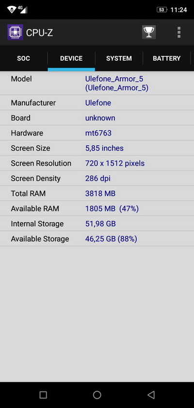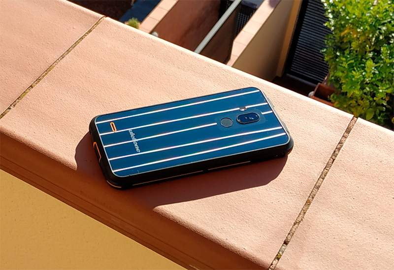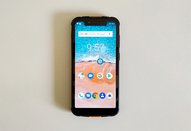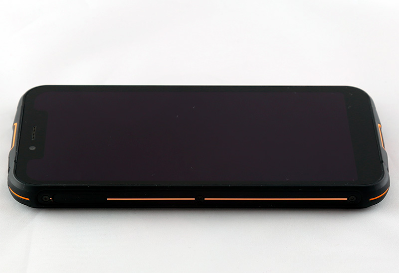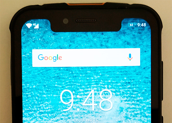 Здесь есть "монобровь". Она довольно широкая, но все-таки позволяет увеличить полезную площадь дисплея за счет того, что справа-слева от выреза располагается информация статусной строки. Кстати, разработчики из uleFone с гордостью заявляют, что Armor 5 - это первый в мире защищенный "монобровный" смартфон. И похоже, что так оно и есть - я другие такие пока не встречал.