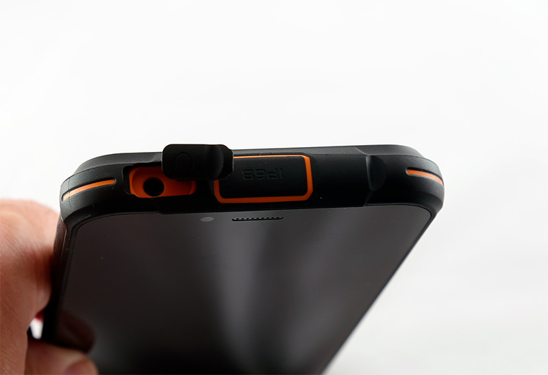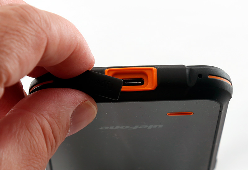 С этими заглушками у защищенных "пухликов" нередко встречаются проблемы: во имя водонепроницаемости они сидят очень плотно и их бывает сложно открыть без применения каких-то вспомогательных инструментов. Здесь конструкция всех заглушек хорошо продумана: они сидят плотно, но при этом совершенно нормально открываются ногтем. И мне даже непонятно, зачем в комплекте идет инструмент для открывания заглушек, - он просто не нужен. Ну и замечу, что у меня в порт USB-C спокойно вставлялись любые провода, а то ведь есть защищенные смартфоны со слишком глубокой посадкой порта, для которых требуется специальный кабель.
