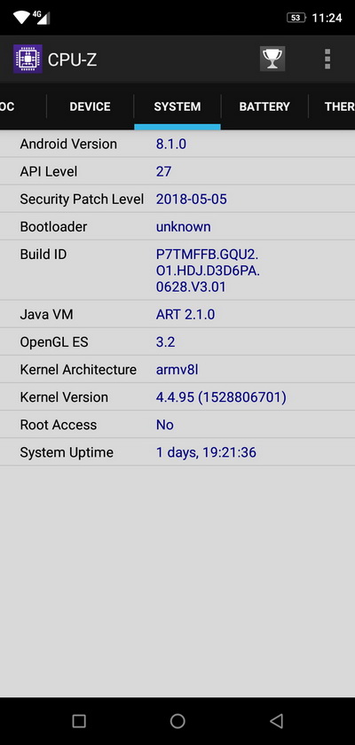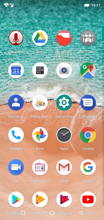 Как обычно для подобных смартфонов, никаких специальных оболочек здесь не предусмотрено, поэтому установлен обычный "Андроид" версии 8.1.