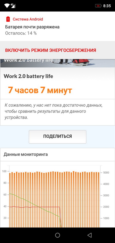 Однако при моем стандартном режиме использования этот смартфон спокойно жил три полных дня. Что очень даже прилично. А низковатые результаты PCMark показывают, что у него не особо хорошо оптимизировано энергопотребление при высоких нагрузках.