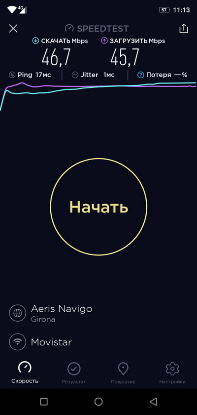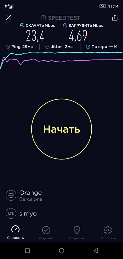 Скорость мобильного Интернета - соответствует текущим условиям.