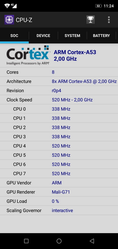 Процессор:  MediaTek Helio P23 (MT6763V), 8-ядерный, частота 2 ГГц