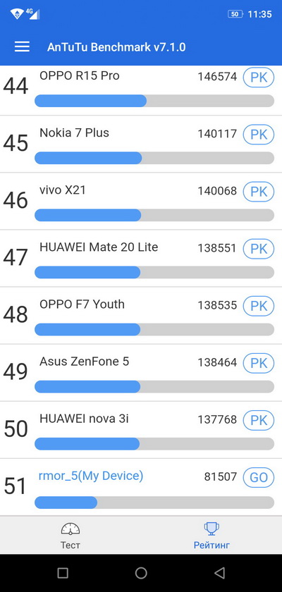 Индекс по AnTuTu. Кстати, 81 тысяча - это очень даже неплохо. У недавно обозренных "пухликов" Doogee S55 и Vertex Impress Grip было 35 и 51 тысяча.