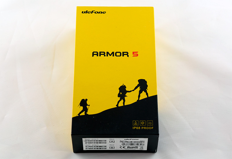 Коробочка с небом пронзительно желтого цвета (почему-то), под которым парня в горы тяни, рискни, не бросай одного его без смартфона uleFone Armor 5, понял?