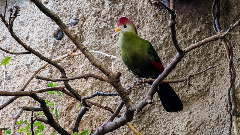 Птичка ниже называется краснохохлый турако (red-crested turaco).