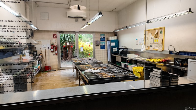Интересно то, что в павильоне с птицами кухня, где им готовят еду, открыта на всеобщее обозрение. И там написано, что для каждой птицы отдельно готовят еду.