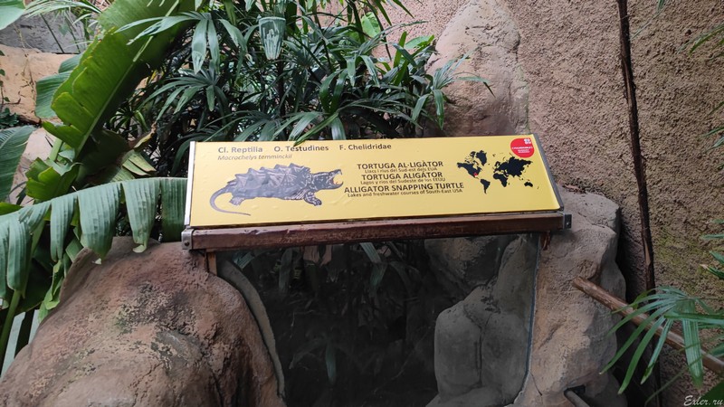 А еще в этом отделе содержится такое интересное животное, как аллигаторовая щелкающая черепаха, но она пряталась под мостиком.