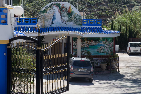 Подъехали, стали искать вход в эти "Водопады Альгара", что оказалось нетривиальной задачей. Зато вдоль дороги располагались многочисленные частные платные парковки, ресторанчики и магазинчики. Некоторые магазинчики выглядели очень экзотично, как, например, вот этот.