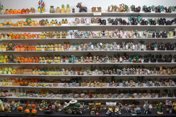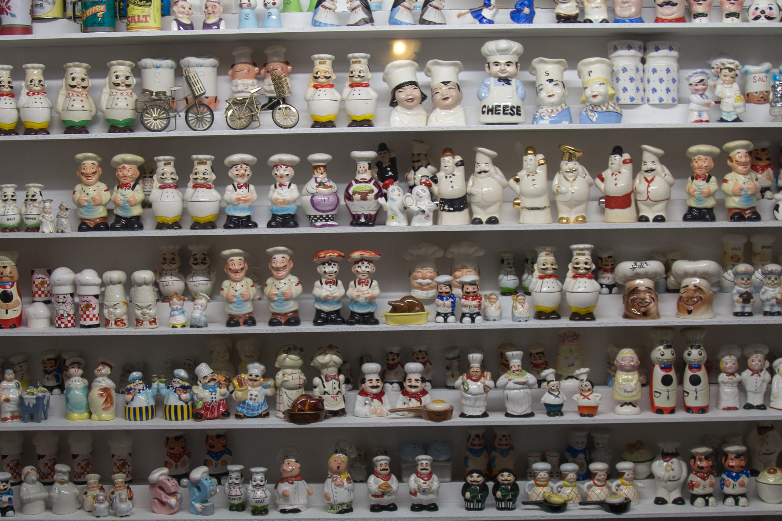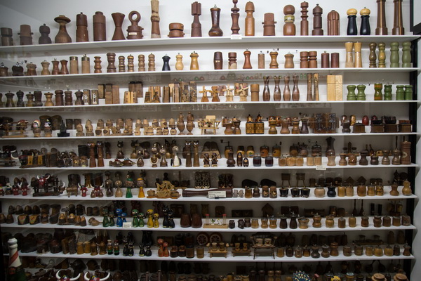 Во всех городских музеях из-за недостатка времени побывать было нереально (кроме того, я опасался, что не во всех разрешат фотографировать), поэтому успели посетить только любопытнейший музей солонок и перечниц: я такие коллекции очень люблю, да и музей оказался достаточно большой и разнообразный. Вот очень небольшая часть из того, что я увидел: коллекции солонок и перечниц были разбиты по тематикам.