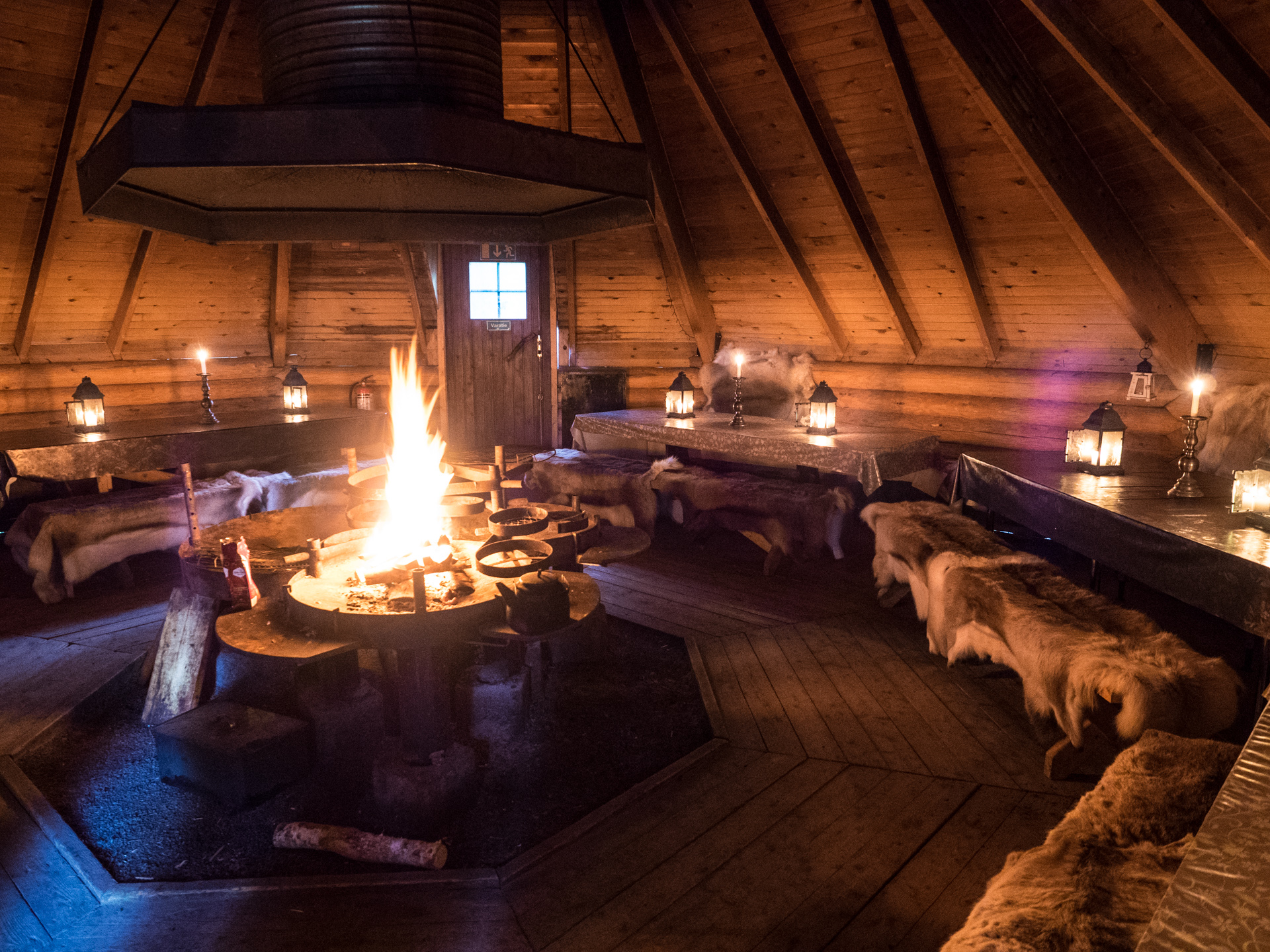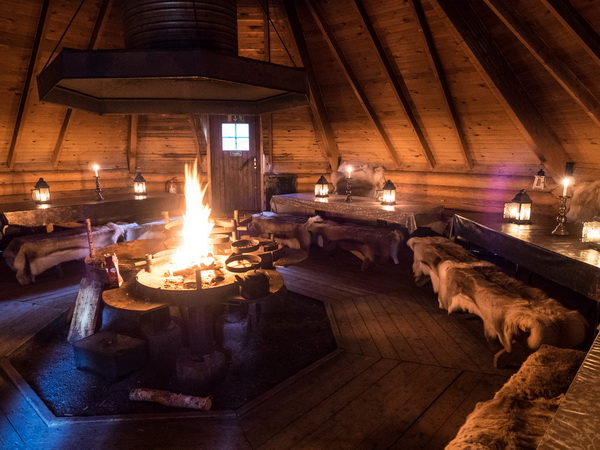 Впрочем, к нашему большому разочарованию, это оказался не храм древнего бога Innostunut Nuijapää с алтарем для жертвоприношений, а всего-навсего колоритнейшая столовая, в центре которой был установлен здоровенный очаг с дымоходом и кучей всяких железных приспособлений для готовки.