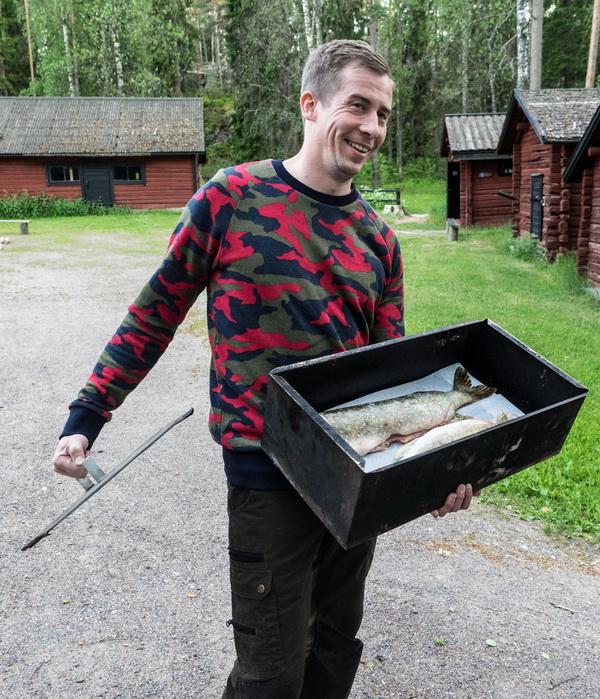 Пока лосось принимал огненные ванны, помощник Пекки показал нам только что выловленных щуку и судака. Сказал, что к ужину тоже закоптит их, а то вдруг нам не хватит лосося.