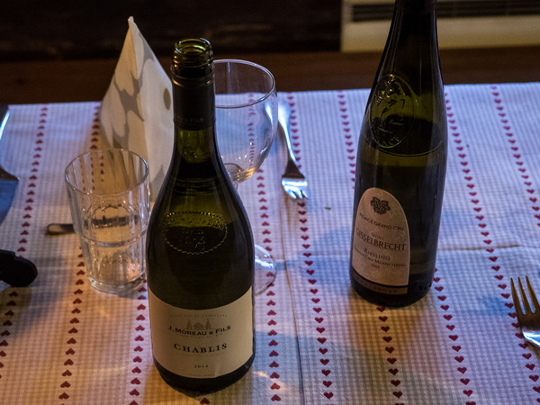 Пекка молча ушел в боковое помещение и вернулся с бутылкой Chablis от J. Moreau & Fils. Ну, понимаете, сказал он, лесная глушь, с поставкой Grand Cru бывают проблемы. Впрочем, сказал он, можно поискать: снова ушел и вернулся с эльзаским рислингом Grand Cru. Если, сказал Пекка, "Шабли" не пойдет, можно развлечься рислингом.