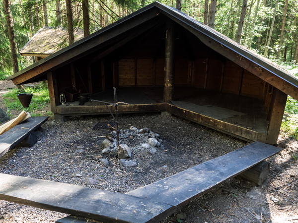 Вот место для костра. Для огня приготовлены дрова (ломать ветки для костра запрещено), на решетках можно пожарить мясо, рыбу или овощи (все это нужно приносить с собой). Также тут есть домик, в котором можно отдохнуть и взять брошюрку с описанием национального парка, ну и неподалеку имеется туалет.