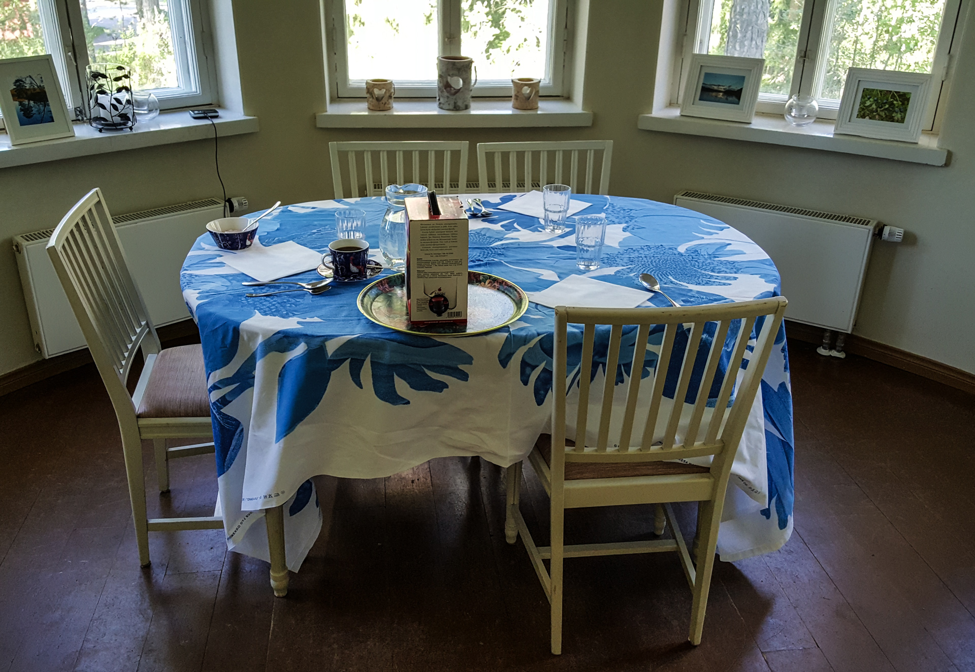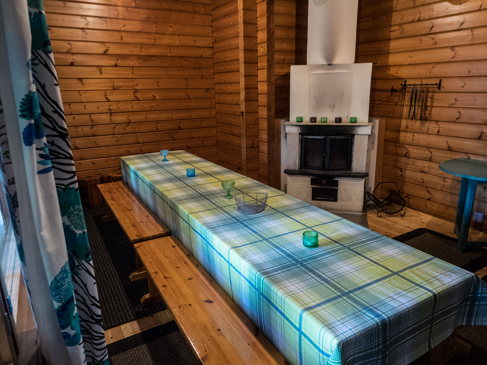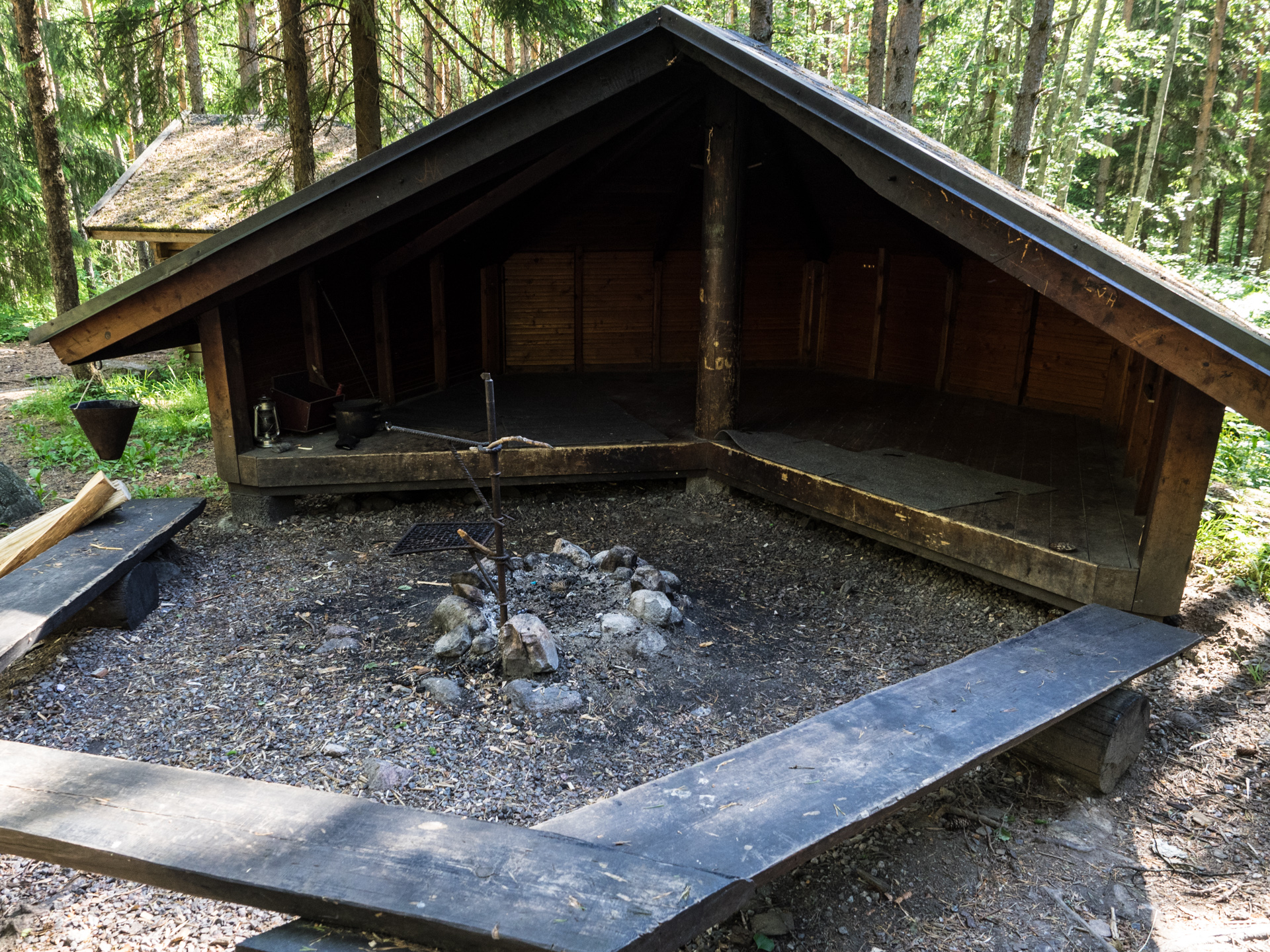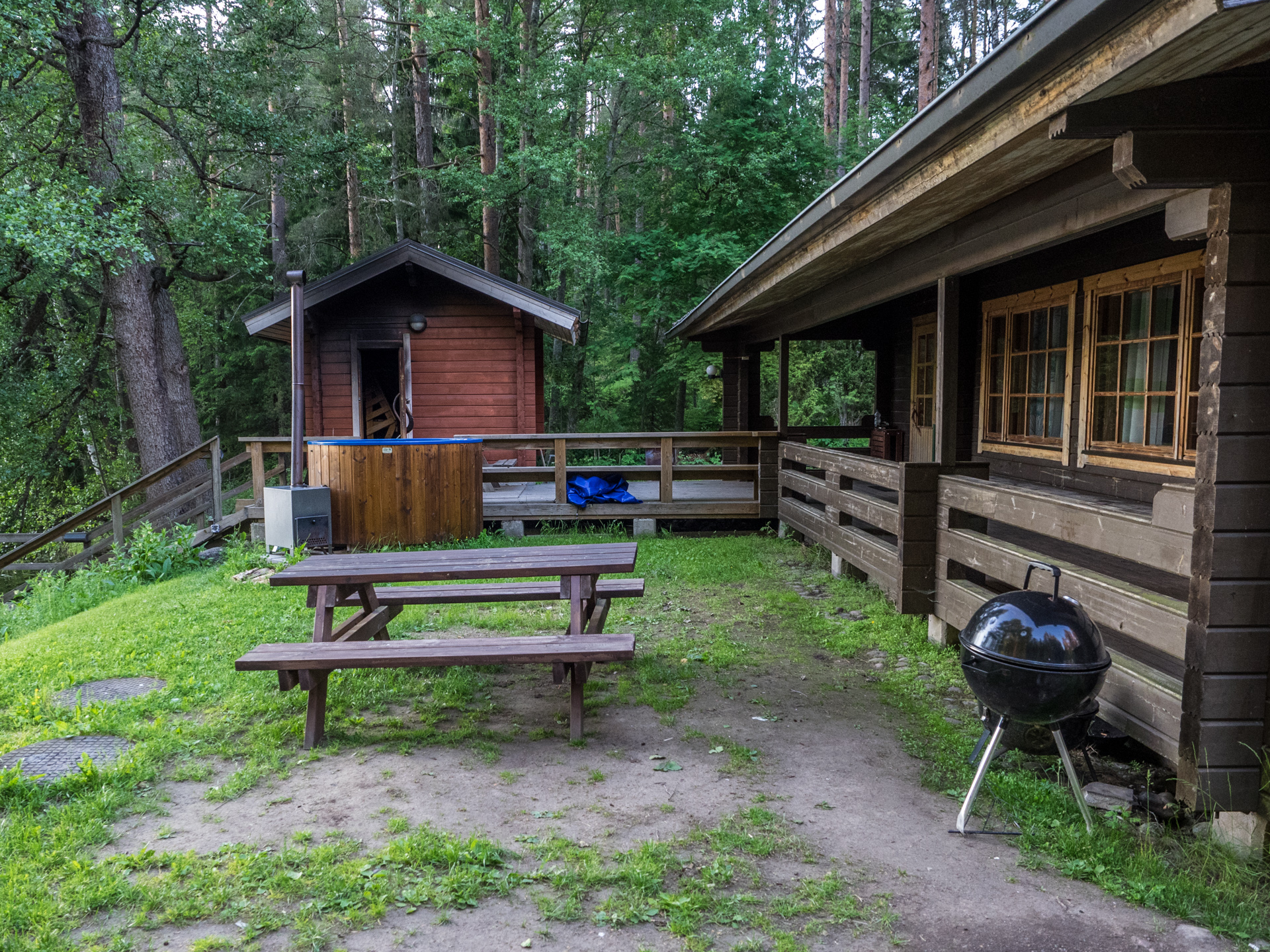Он нас привел к еще одной полянке, где располагалось несколько деревянных строений. Одно из них, как оказалось, являлось еще одной столовой с кухней и печкой, причем построена она, как сказал Пекка, аж двести лет назад.