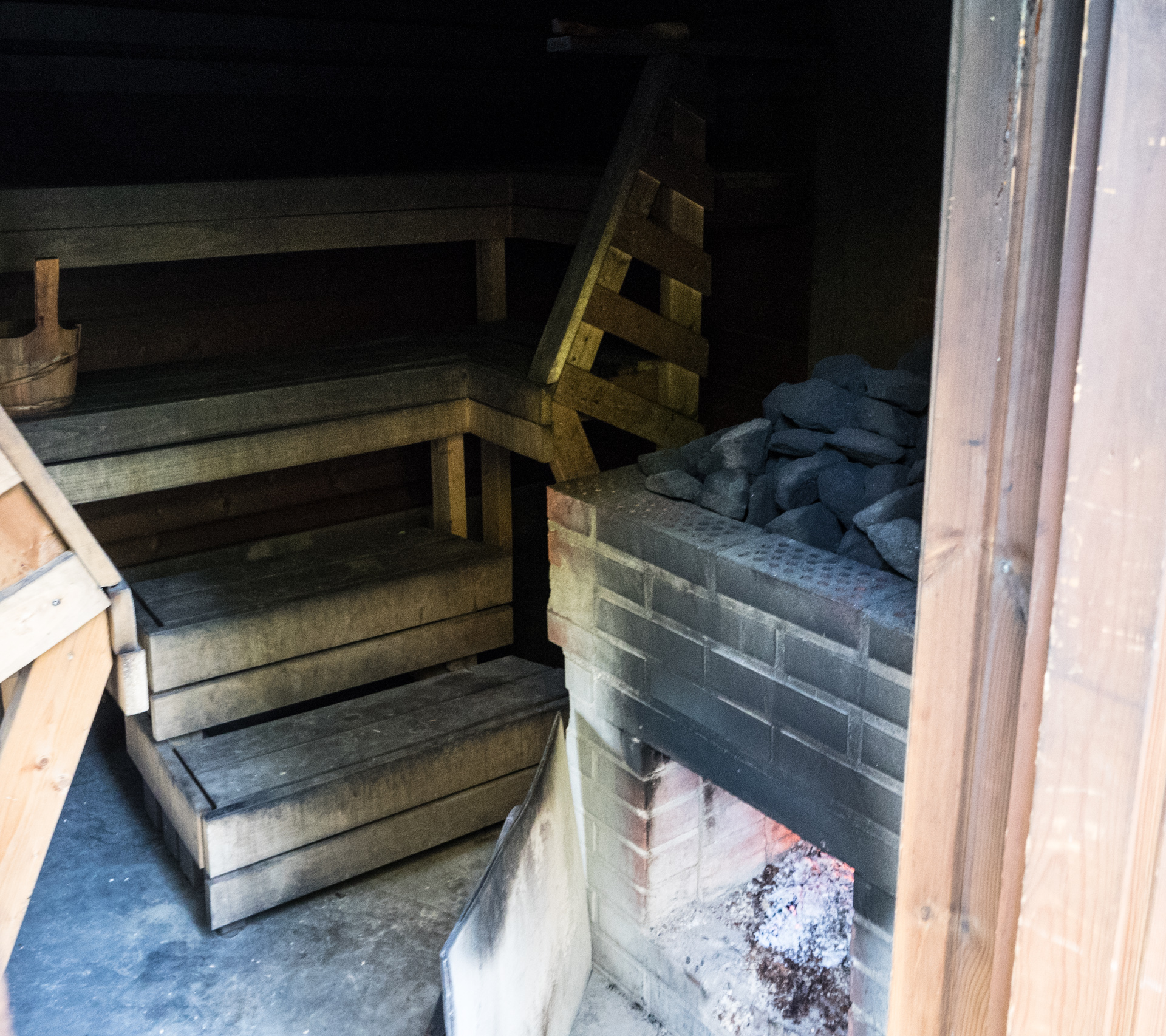 На берегу располагались две сауны: большая современная на электричестве и "чёрная" сауна - такая, какие были приняты в Финляндии в старые времена.