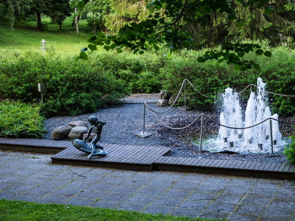 Фонтаны, скульптурные композиции: в общем, есть где предаться легкой поэтической флегме. А еще мы там обнаружили дартс, мини-стадион, волейбольную площадку и наглого финского кота, который, к сожалению, отказался фотографироваться - из скромности.