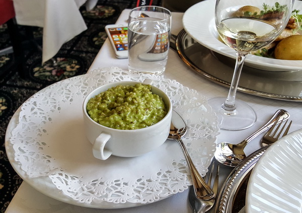 Но перловка в каком-то вкуснейшем зеленом соусе, так что, честное слово, слопал всю плошку - ребята не дадут соврать.