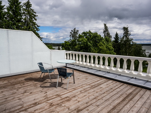 Правда, рядом с ним расположено еще одно здание, построенное в семидесятые (по нему и видно): тут еще двести номеров, спа-комплекс и конференц-залы. Собственно, из-за конференц-залов на парковке и собирается много машин: сюда приезжают многочисленные группы из Хельсинки на конференции, где они обмениваются опытом, вкусно кушают в ресторане и, конечно, парятся в саунах спа-комплекса - какая ж конференция в Финляндии да без сауны?!! На ночь эти ребята обычно не остаются и возвращаются на машинах в Хельсинки.