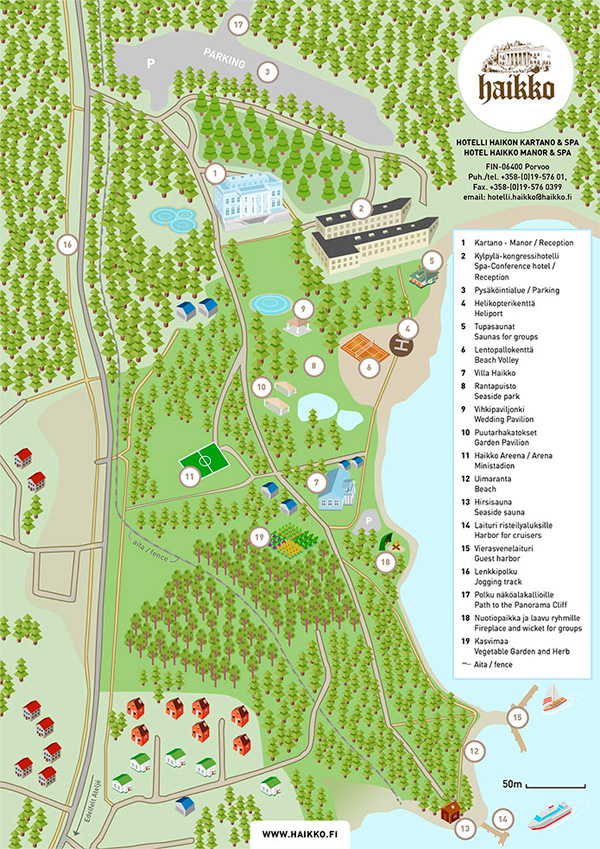 Потом отправились гулять по территории. Отлично ухоженный парк, занимающий 15 гектаров, с кучей всяких тропинок для прогулок (трассы по 1,5 километра, 2,5 километра и 6 километров), спортивных площадок, ну и морских развлечений вроде катания на лодках и катерах. Кстати, сюда на катере можно спокойно добраться из Хельсинки, что многие и делают (как правило, приезжают сюда ради спа-комплекса и ресторана).