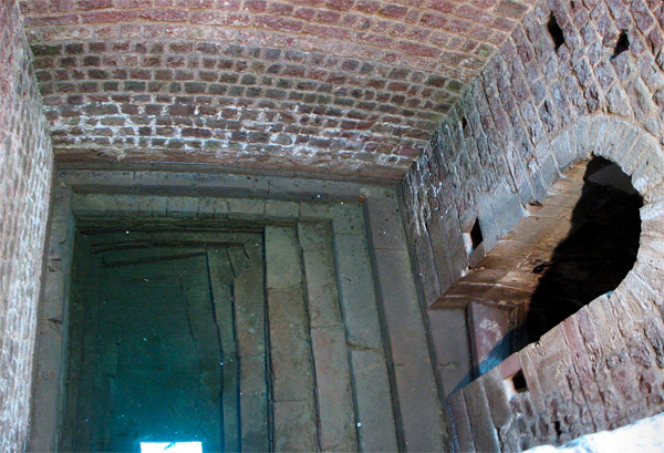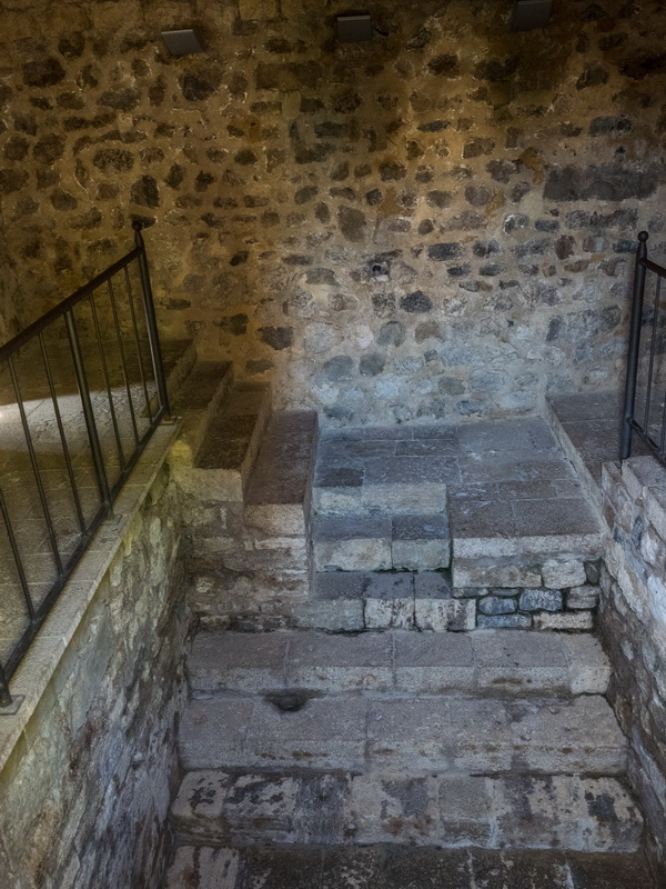 Со стороны дорожки, идущей вдоль реки, есть небольшое окошко, ведущее внутрь к миквам, но туда заглянуть не получится. Зато можно просунуть руку с фотоаппаратом и снять то, что находится внутри.